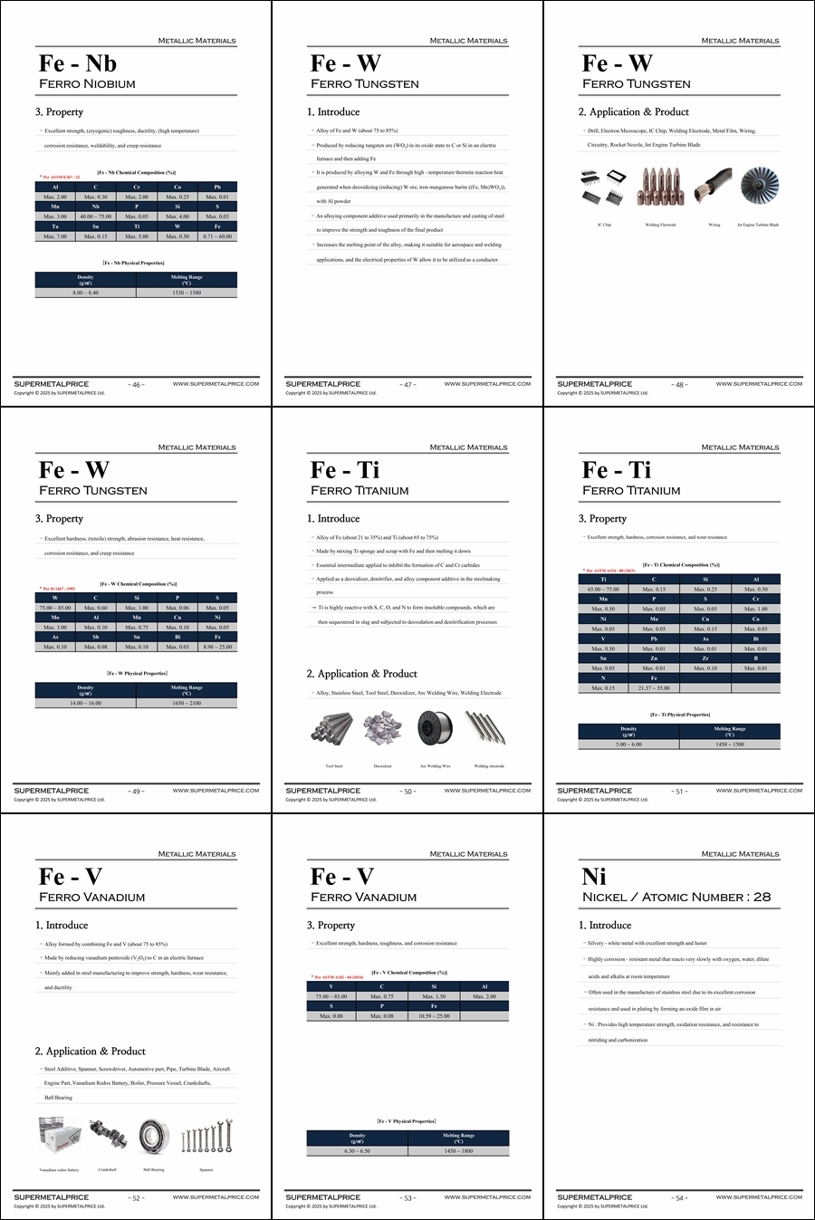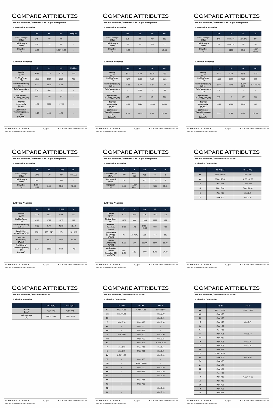 From lightweight, corrosion-resistant titanium alloys that drive aerospace innovation, to nickel-based superalloys with unparalleled thermal resilience in environments exceeding 1200°C, and extending to specialized iron alloys that support shipbuilding, construction, automotive, and energy sectors—this atlas clearly delineates the unique attributes and optimal applications of each material grade. This approach empowers design engineers, materials scientists, and quality specialists to make precise, performance-driven, and economically informed material decisions.